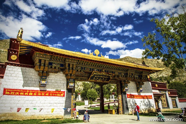 在它的寺內(nèi)珍藏著大量的珍貴文物和工藝品,如皇帝御賜的佛經(jīng)、佛像、法器、金銀器等。其中釋迦益西的彩色絲像,長109cm,寬64cm,歷史雖悠久,但它的色彩依然保持著鮮明的特色??梢哉f這珍藏十分珍貴的。