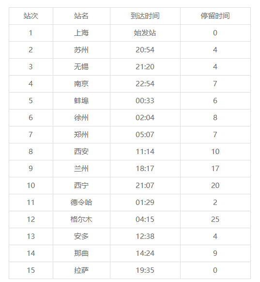 問:西寧市到拉薩Z165途經(jīng)各地及運行時間表?